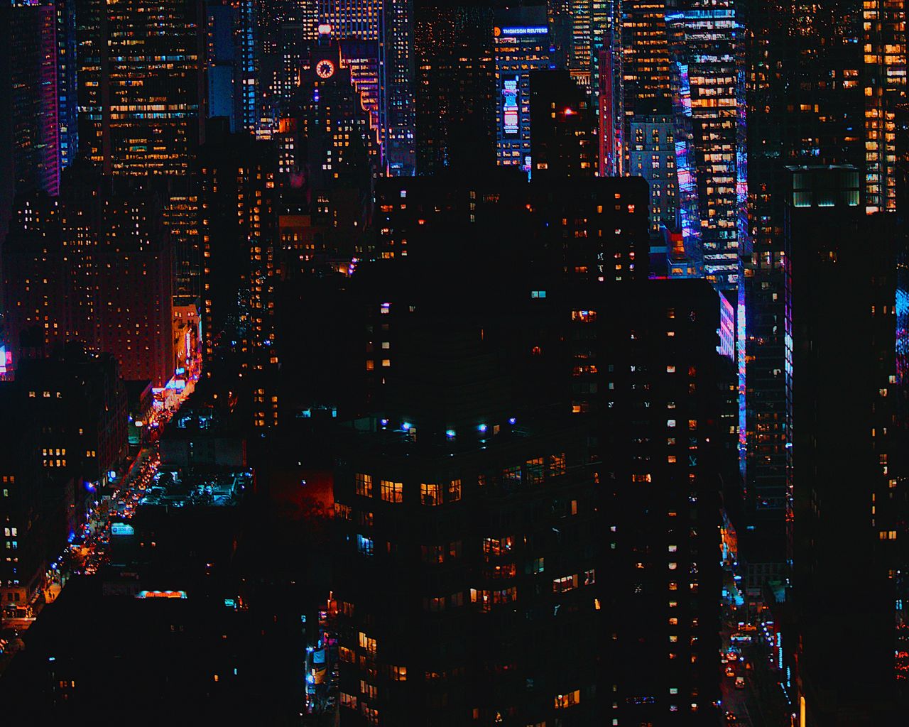 Download 1280x1024 night city, city lights, buildings, skyscrapers, night wallpaper, background standard 5:4