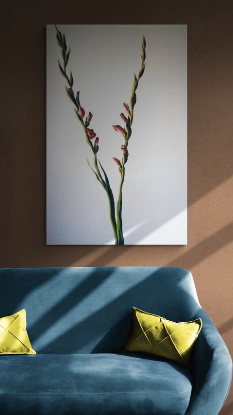 Download 480x854 painting, sofa, pillows, decor, interior, aesthetics wallpaper, background nokia lumia 630, sony ericsson xperia
