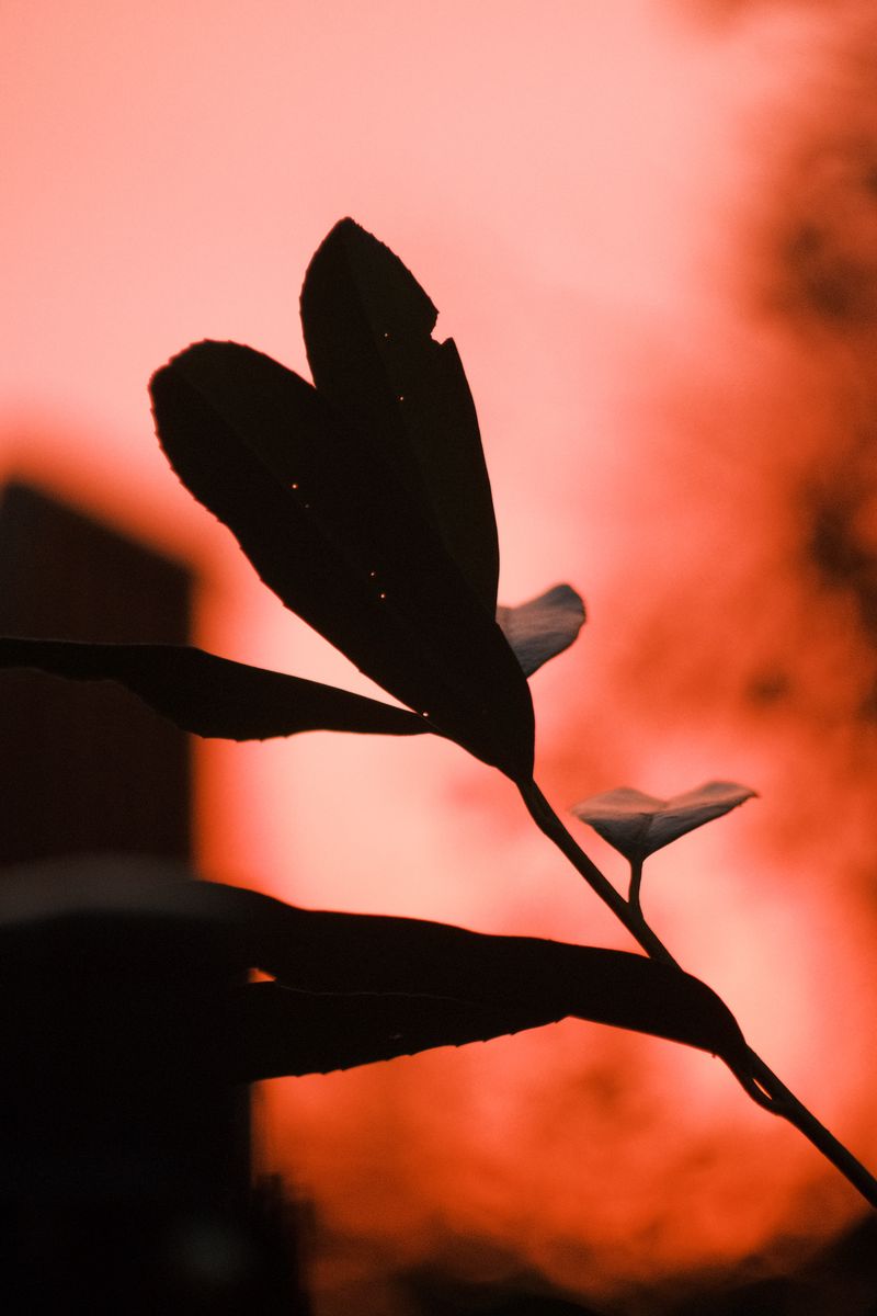 Download 800x1200 plant, leaves, fog, red wallpaper, background iphone 4s/4 for parallax