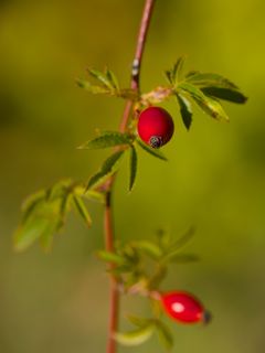 Download 240x320 rosehip, berries, leaves, branches, macro wallpaper, background old mobile, cell phone, smartphone