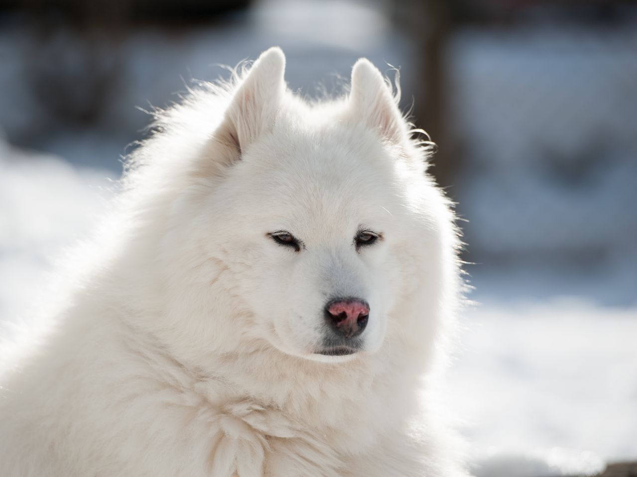 Download 1280x960 samoyed, dog, pet, fluffy, white wallpaper, background standard 4:3