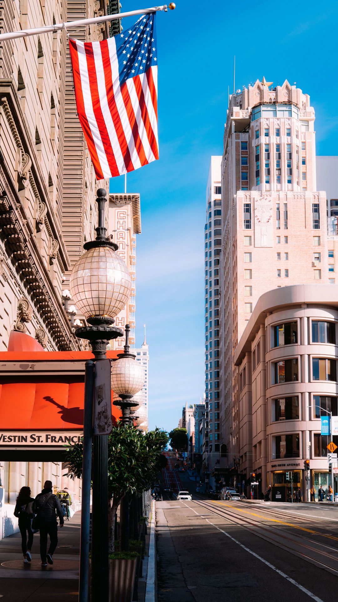 Download 1080x1920 san francisco, usa, city, street, flag wallpaper, background samsung galaxy s4, s5, note, sony xperia z, z1, z2, z3, htc one, lenovo vibe