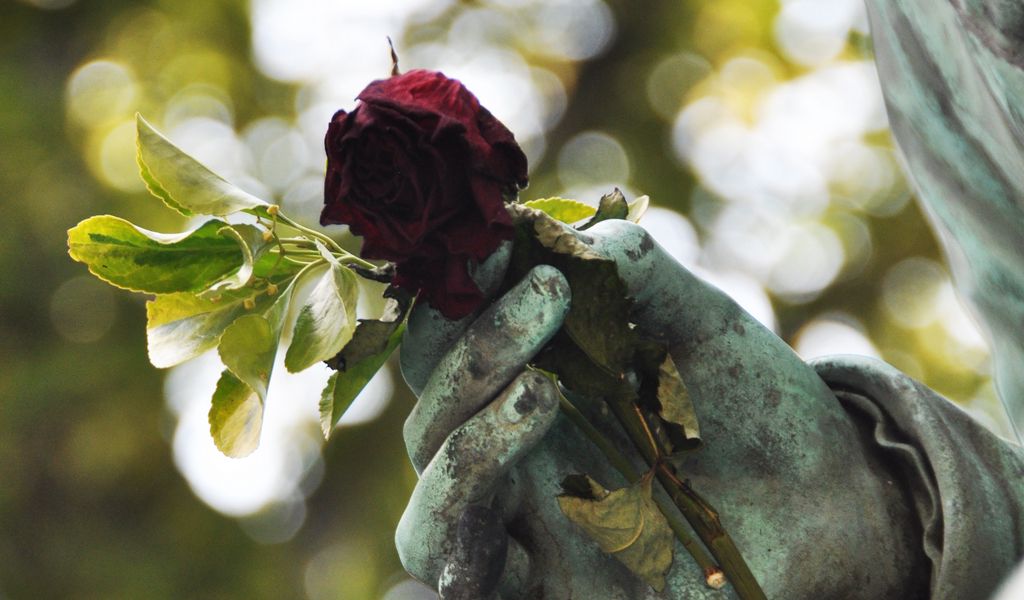 Download 1024x600 sculpture, hand, rose, glare, blur wallpaper, background netbook, tablet