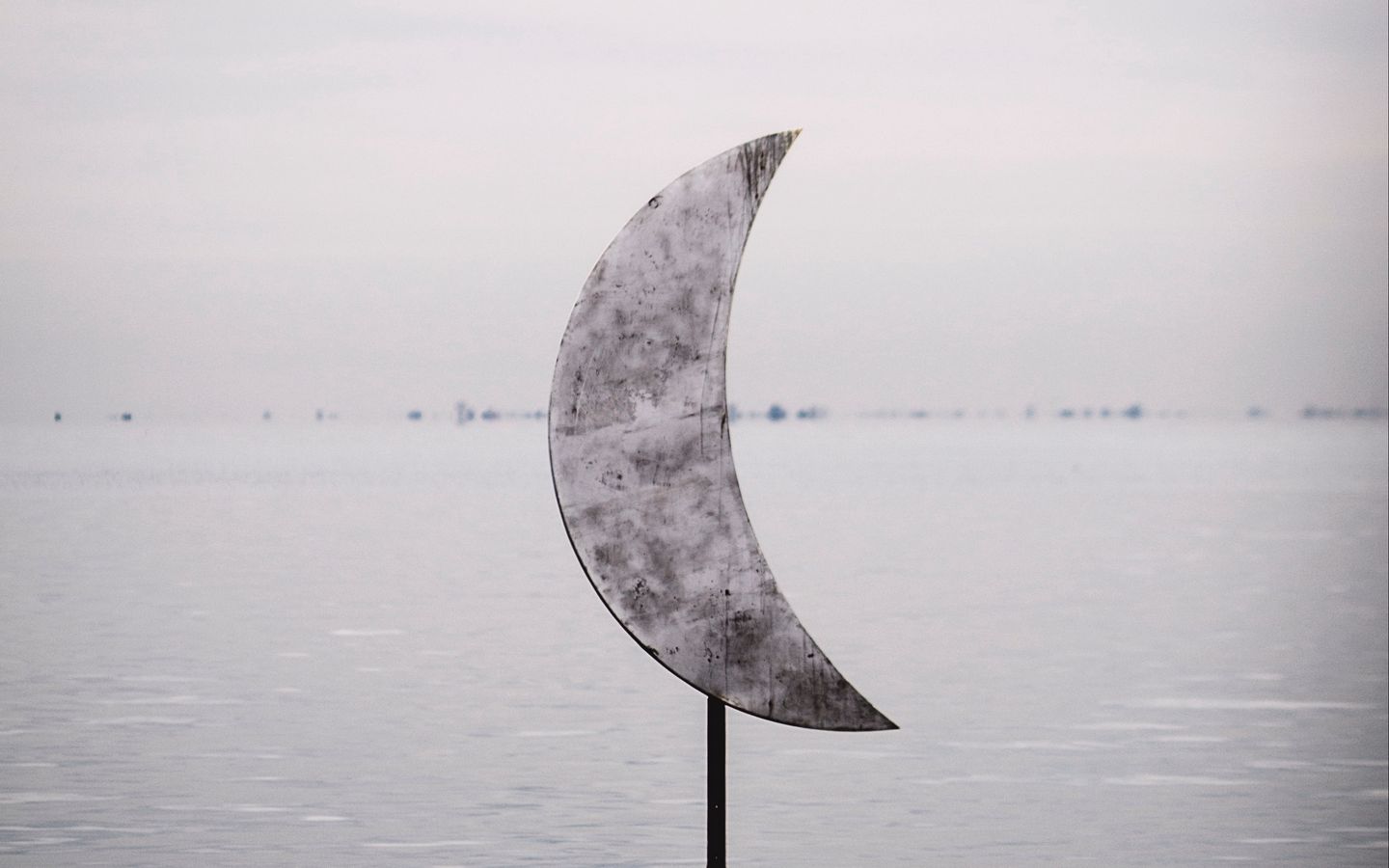 Download 1440x900 sculpture, moon, water wallpaper, background widescreen 16:10