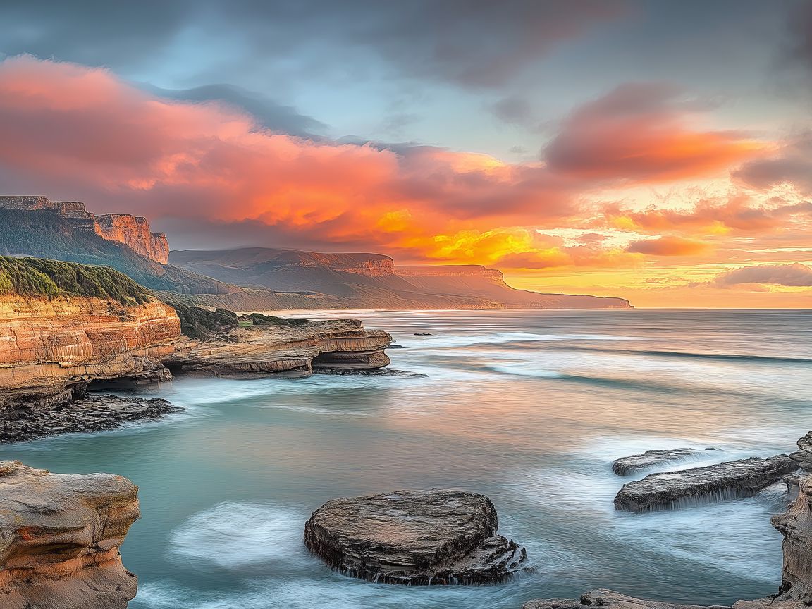Download 1152x864 sea, bay, rocks, clouds wallpaper, background standard 4:3
