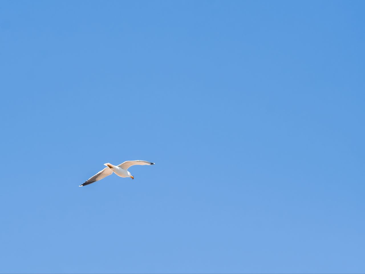 Download 1280x960 seagull, bird, sky, minimalism, blue wallpaper, background standard 4:3