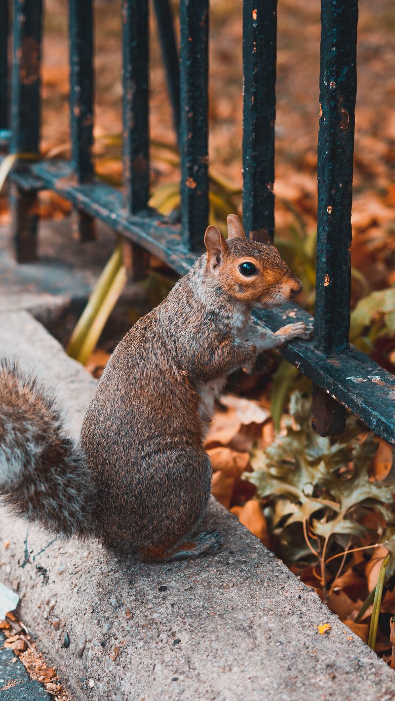 Download 800x1420 squirrel, animal, fence, stand wallpaper, background iphone se/5s/5c/5 for parallax