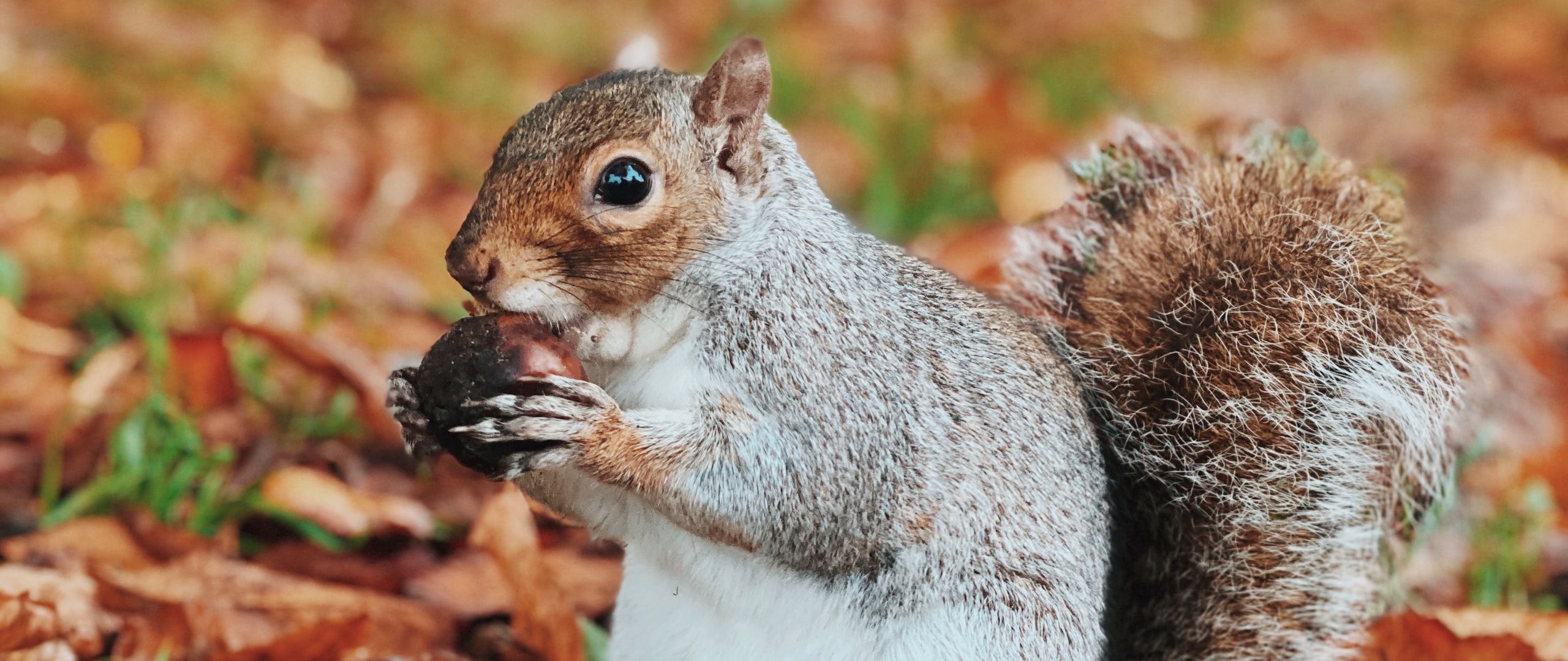 Download 2560x1080 squirrel, rodent, animal, nut, foliage wallpaper, background dual wide 1080p