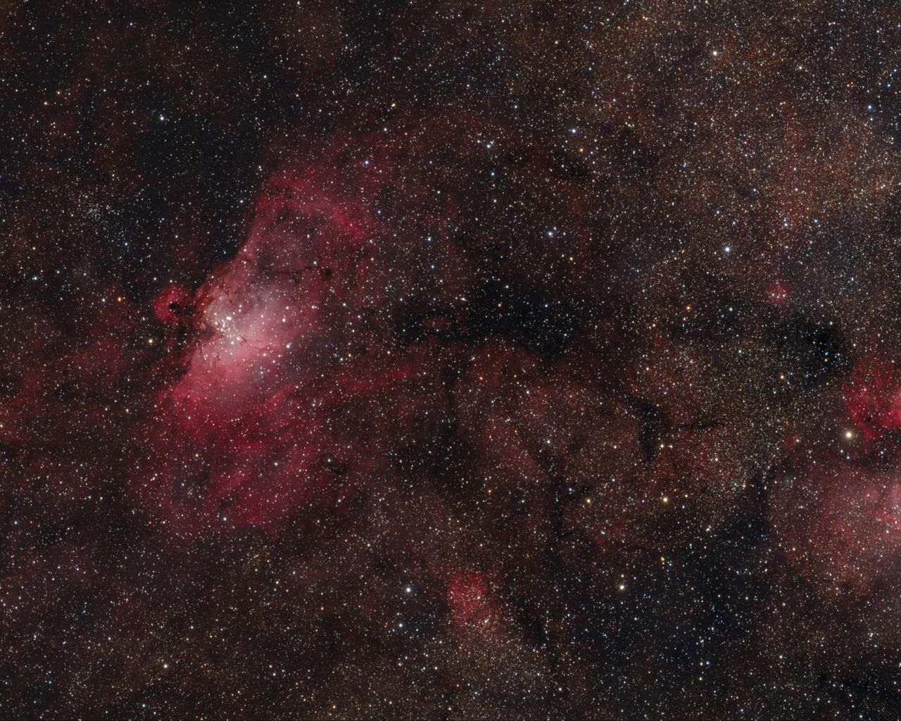 Download 1280x1024 stars, nebulae, glitter, red, dark, space wallpaper, background standard 5:4