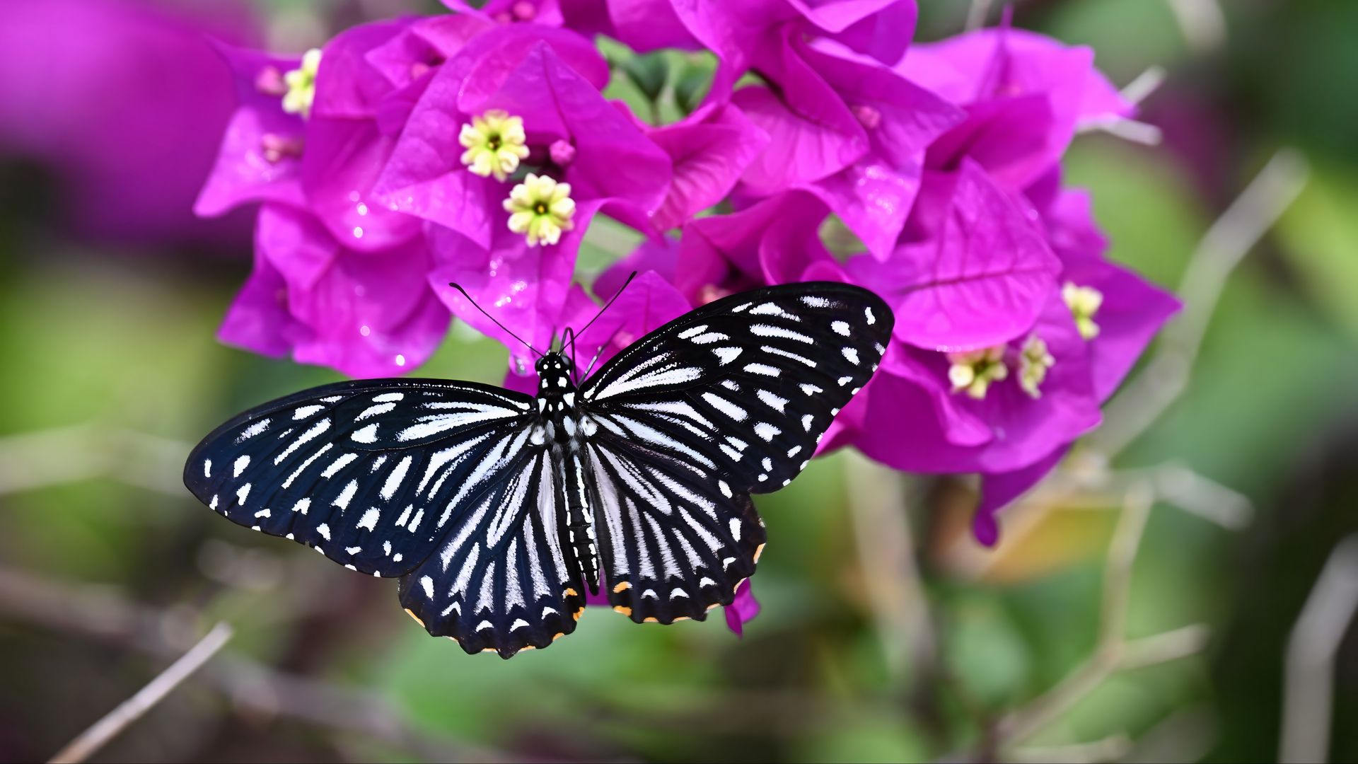 Download 1920x1080 swallowtail, butterfly, flowers, macro, blur wallpaper, background full hd, hdtv, fhd, 1080p