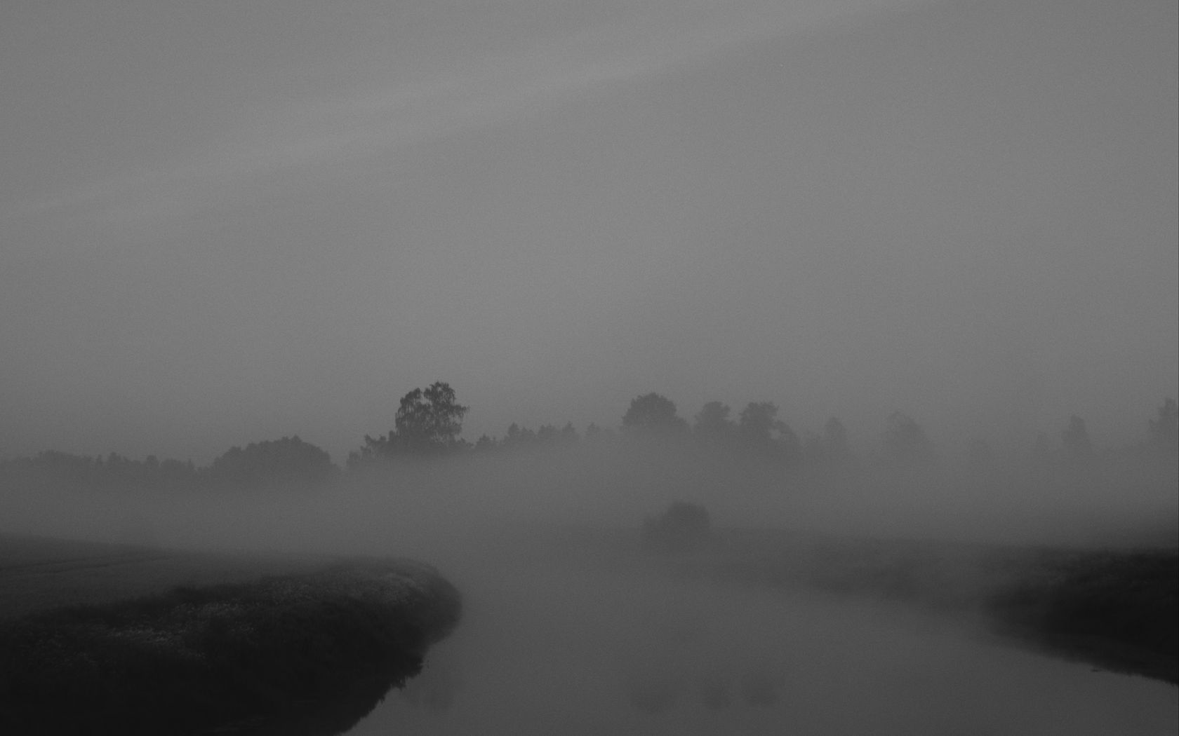 Download 1680x1050 trees, fog, heavy, dark, nature wallpaper, background widescreen 16:10