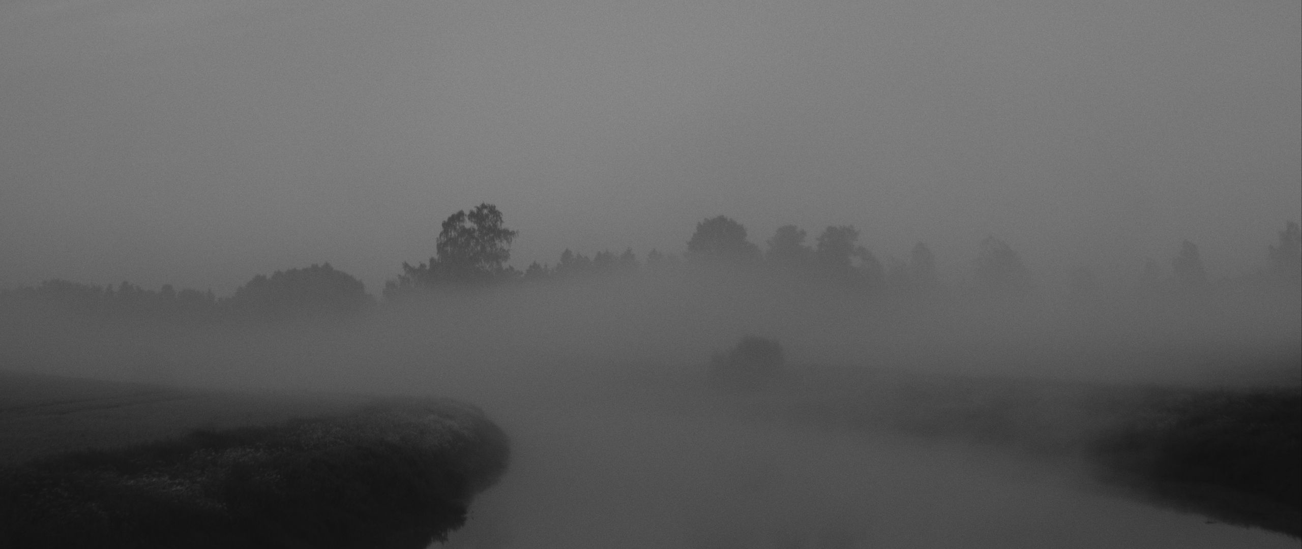 Download 2560x1080 trees, fog, heavy, dark, nature wallpaper, background dual wide 1080p