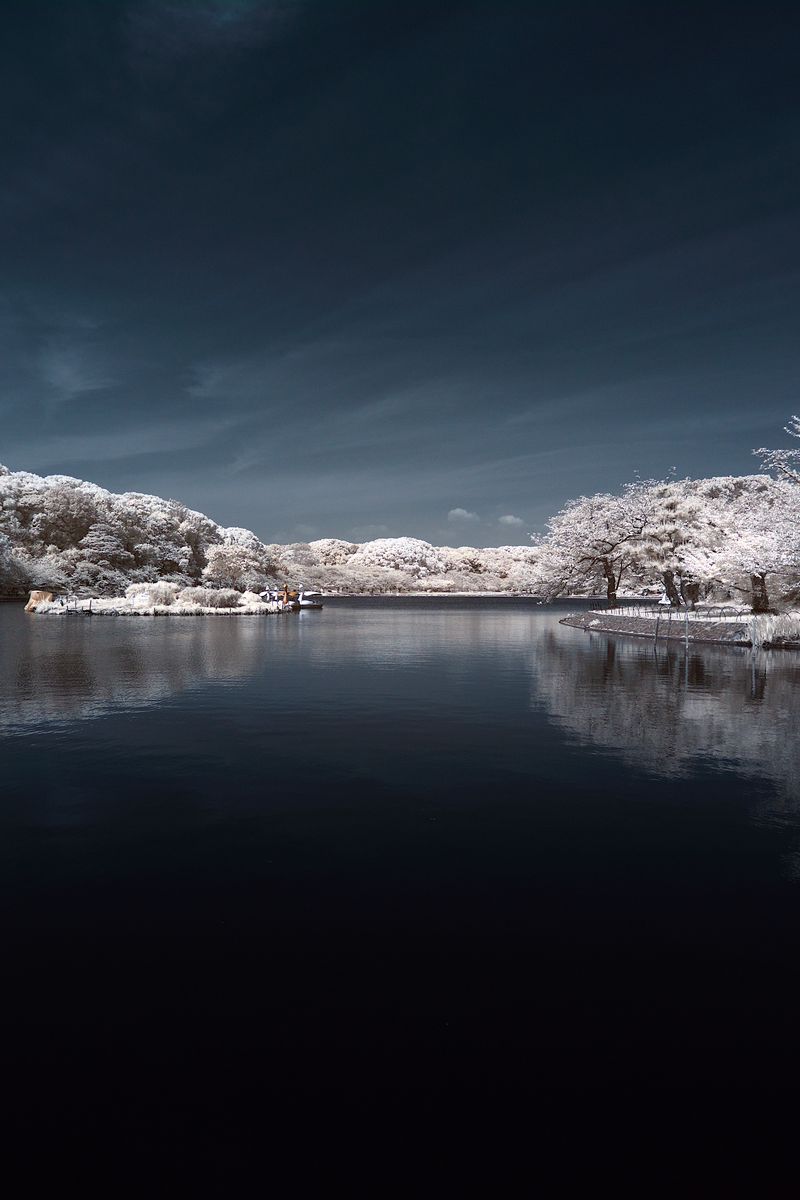 Download 800x1200 trees in snow, water, sky, landscape, nature wallpaper, background iphone 4s/4 for parallax