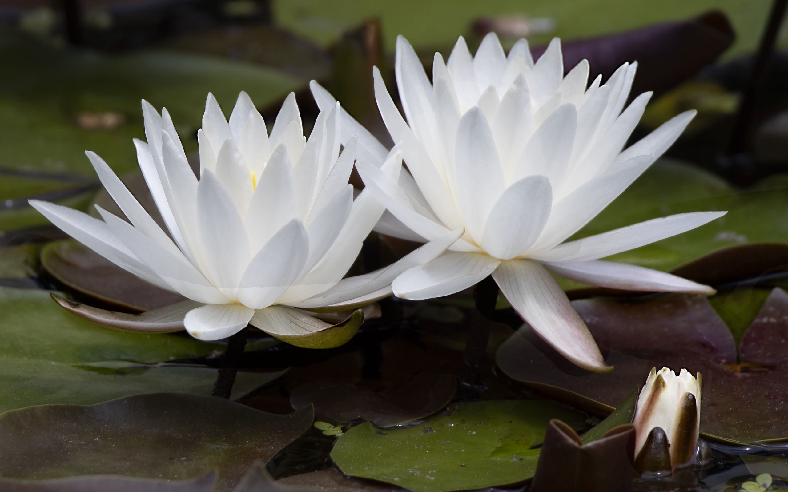 Download 2560x1600 water lily, flowers, white, petals wallpaper, background widescreen 16:10