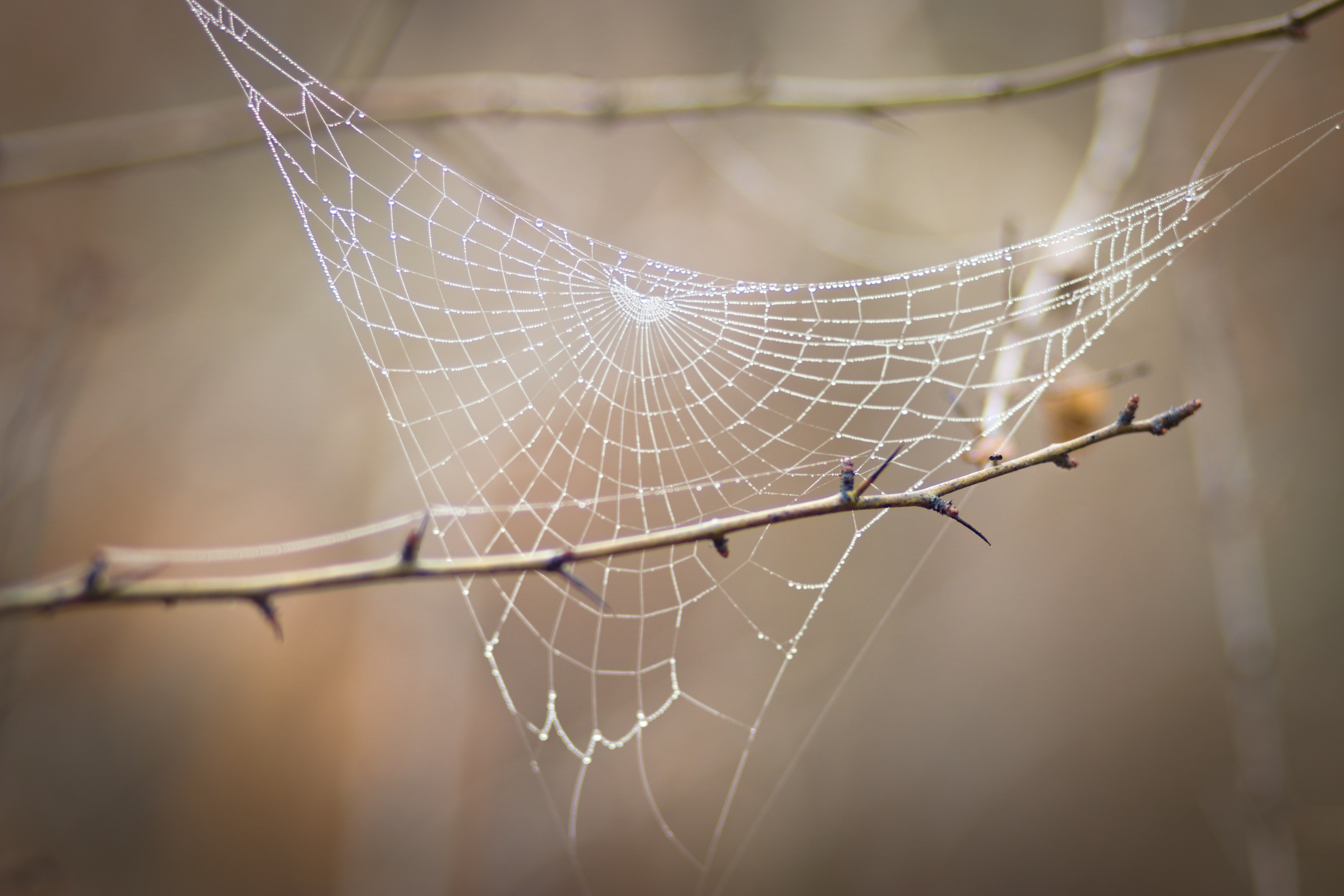 Download 6016x4012 web, branch, blur, drops, macro wallpaper, background